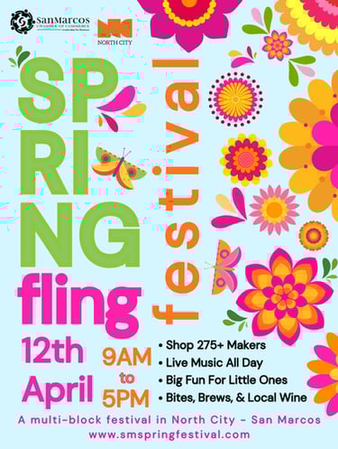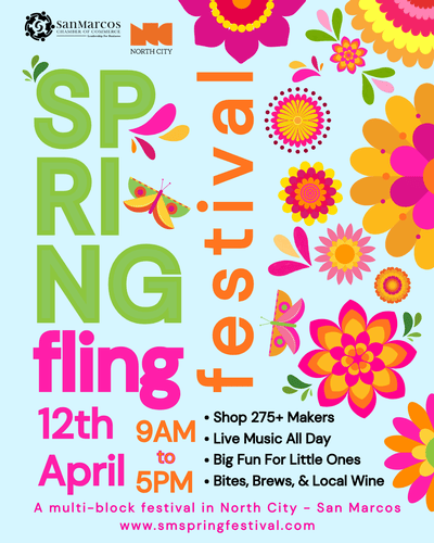 Spring Fling is San Marcos’ can’t-miss celebration of spring, an all-day festival that transforms North City into a vibrant mix of shopping, music, food, and community energy. Drawing visitors from across San Diego County and beyond, Spring Fling is one of the region’s most anticipated spring festivals.